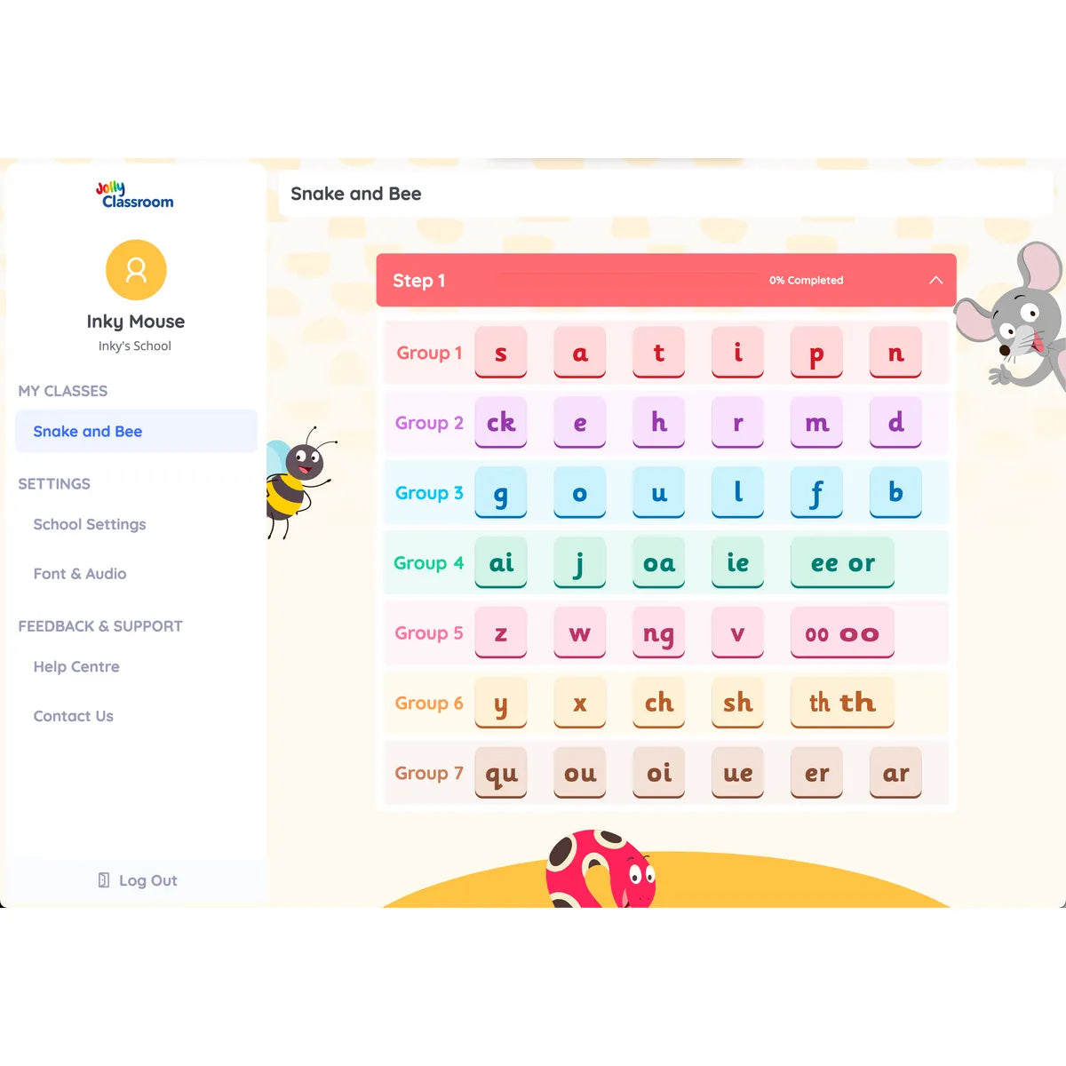 Jolly Classroom is a digital platform for teaching Jolly Phonics in the classroom, providing all the tools teachers need to deliver fun and engaging lessons, easily and effectively. Explore the new home of Inky, Bee and Snake today and discover a whole new way of teaching.
