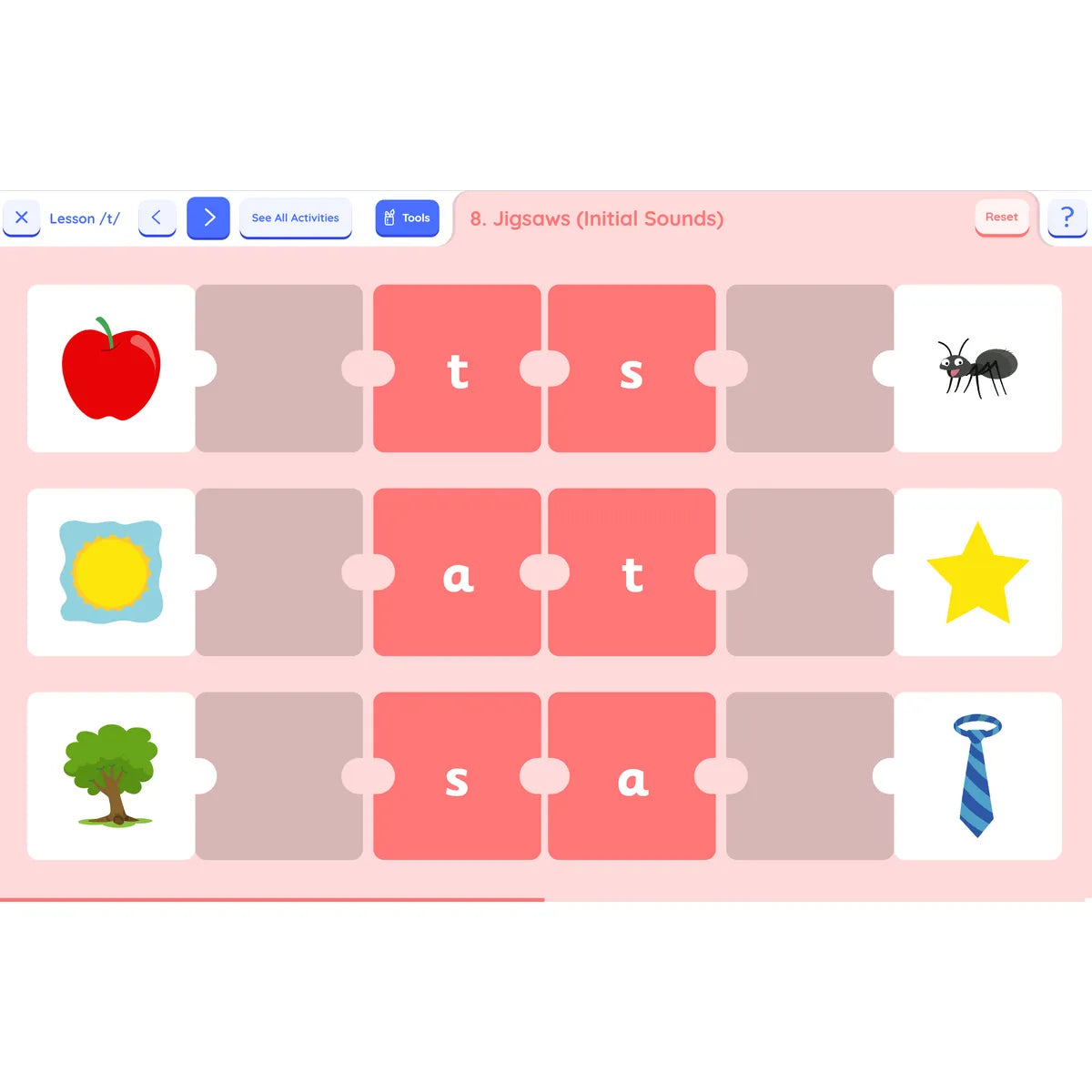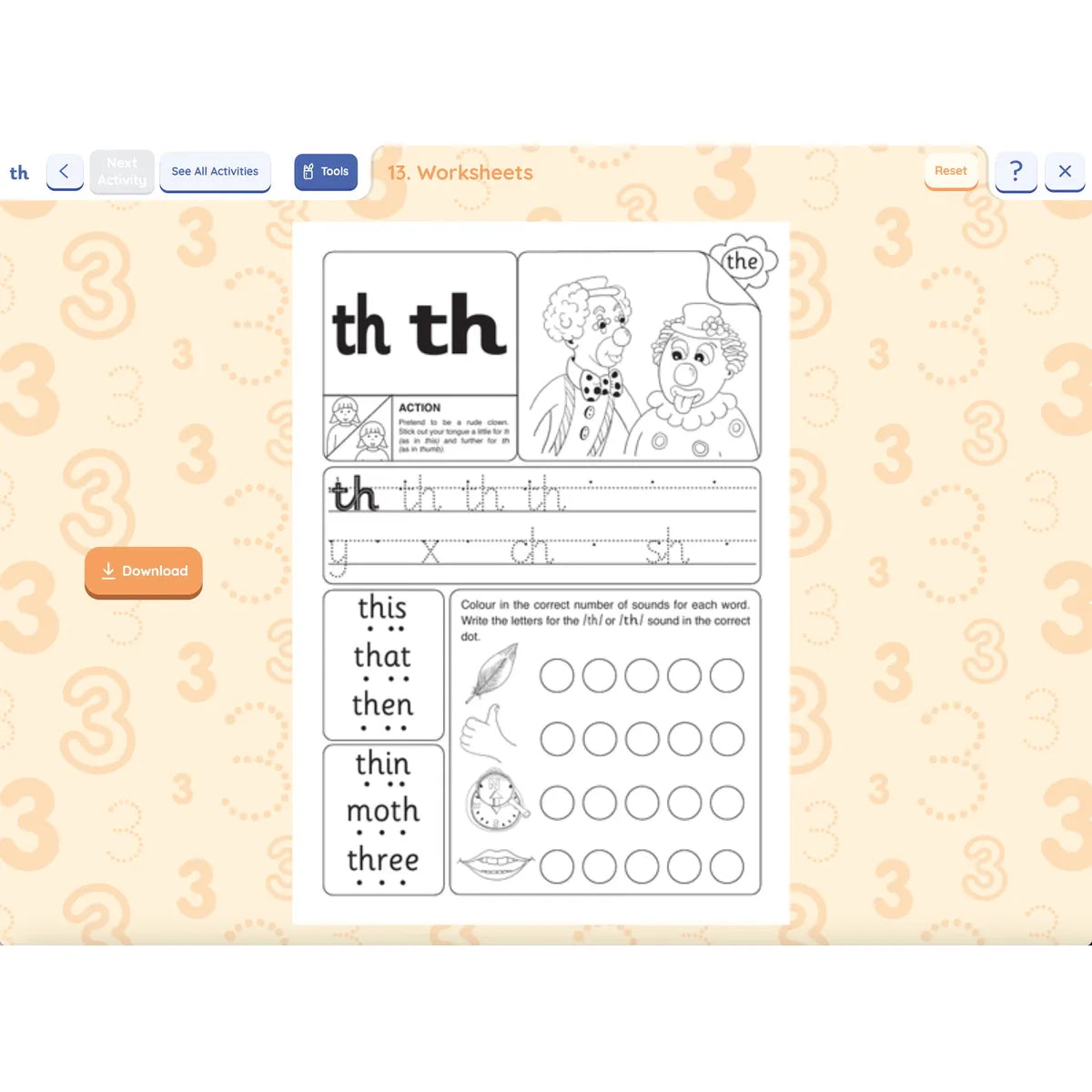 Learning the letter sounds: Children are taught the main 42 letter sounds. This includes alphabet sounds and digraphs such as /sh/, /th/, /ai/, and /ue/.